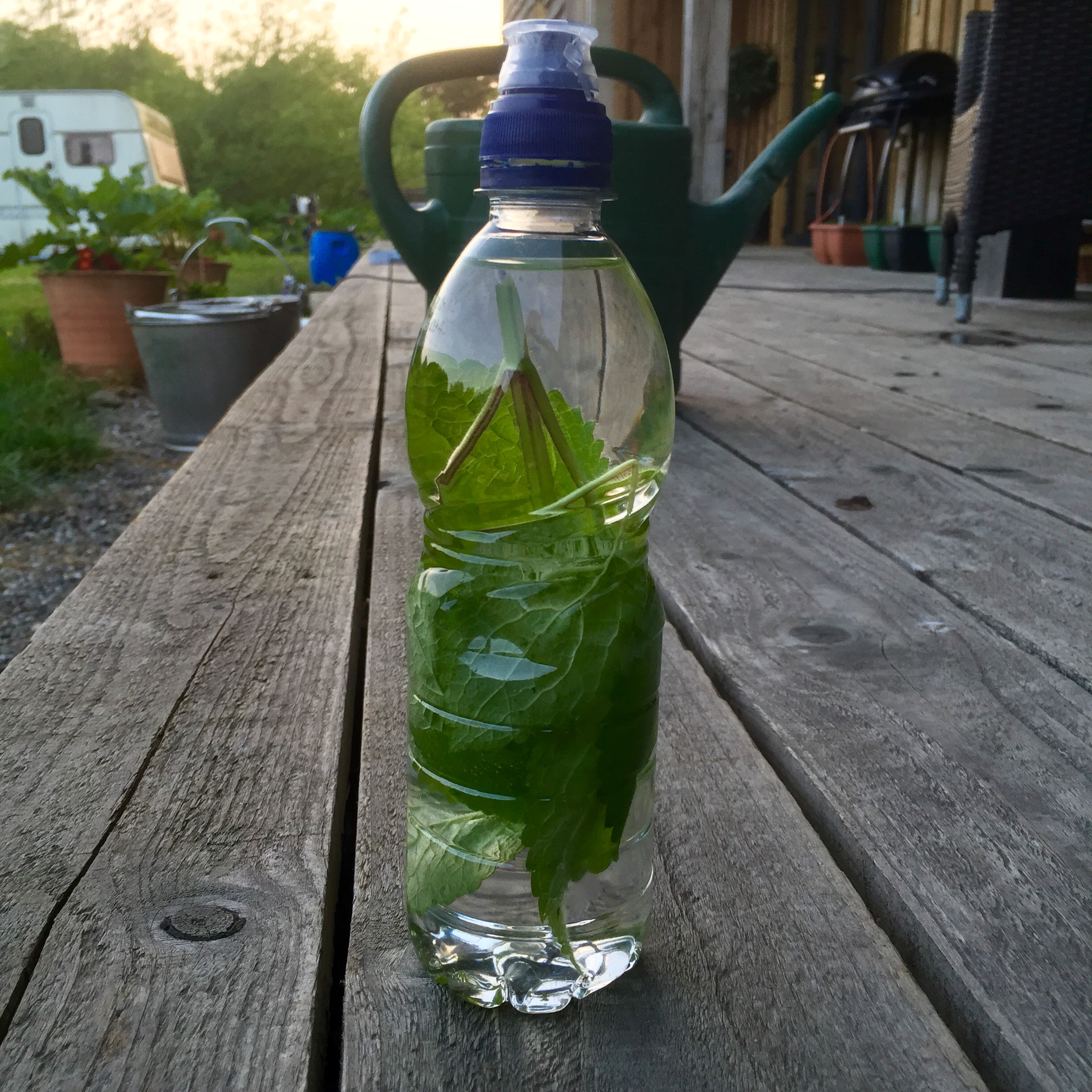 Although it’s been incredibly hot, there was also still enough dock gel under the new leaf sheaths to apply to the swellings (see Do dock leaves really work?) to take the initial itch and aggravation out of the bites. Not having a camp stove with me – rare, but I’d cleaned out the car to take guests around – all I had was a water bottle. So I just picked the plant, crushed it between my hands and pushed it into the bottle. I then gave it a good shake and drank it. Relief was only minutes away!